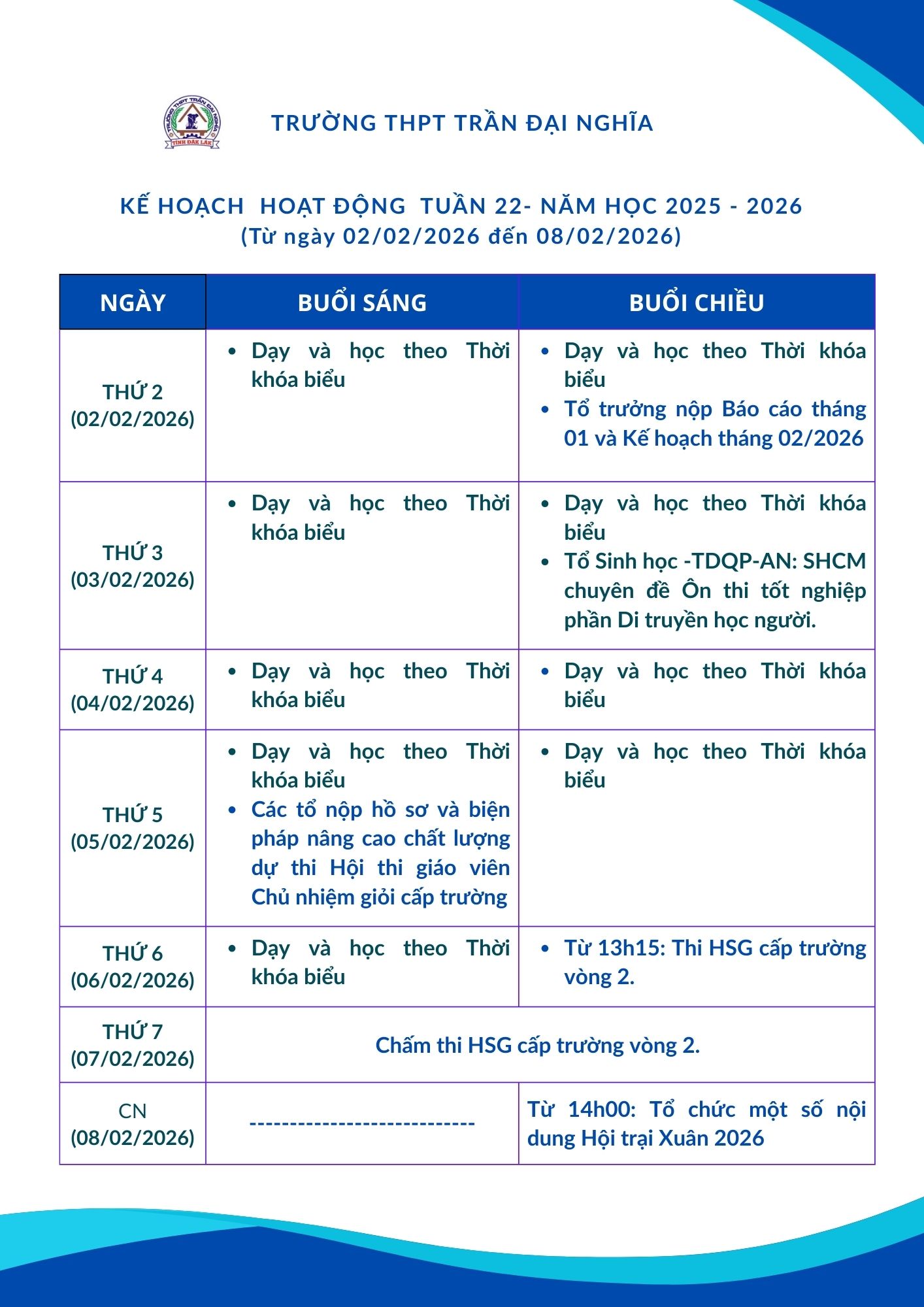 Lịch công tác Tuần 22
