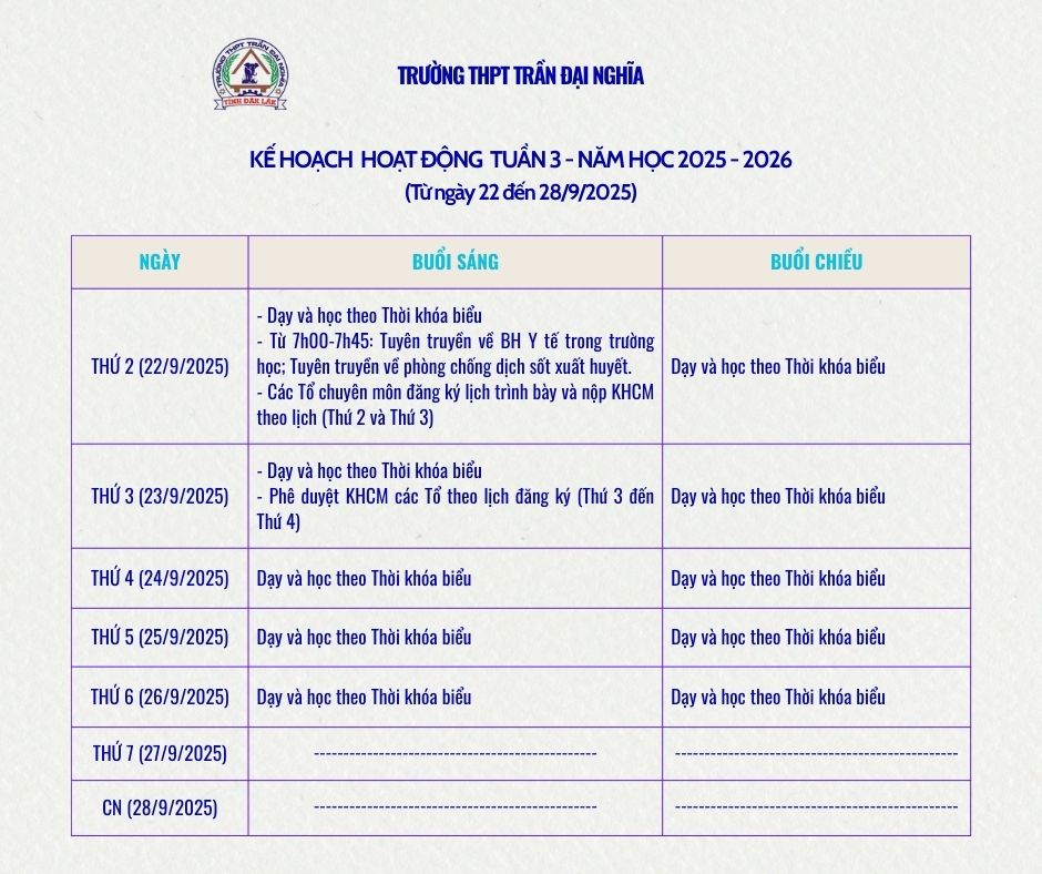 • Kế hoạch tuần 3. Năm học 2025-2026 (21/09/2025)