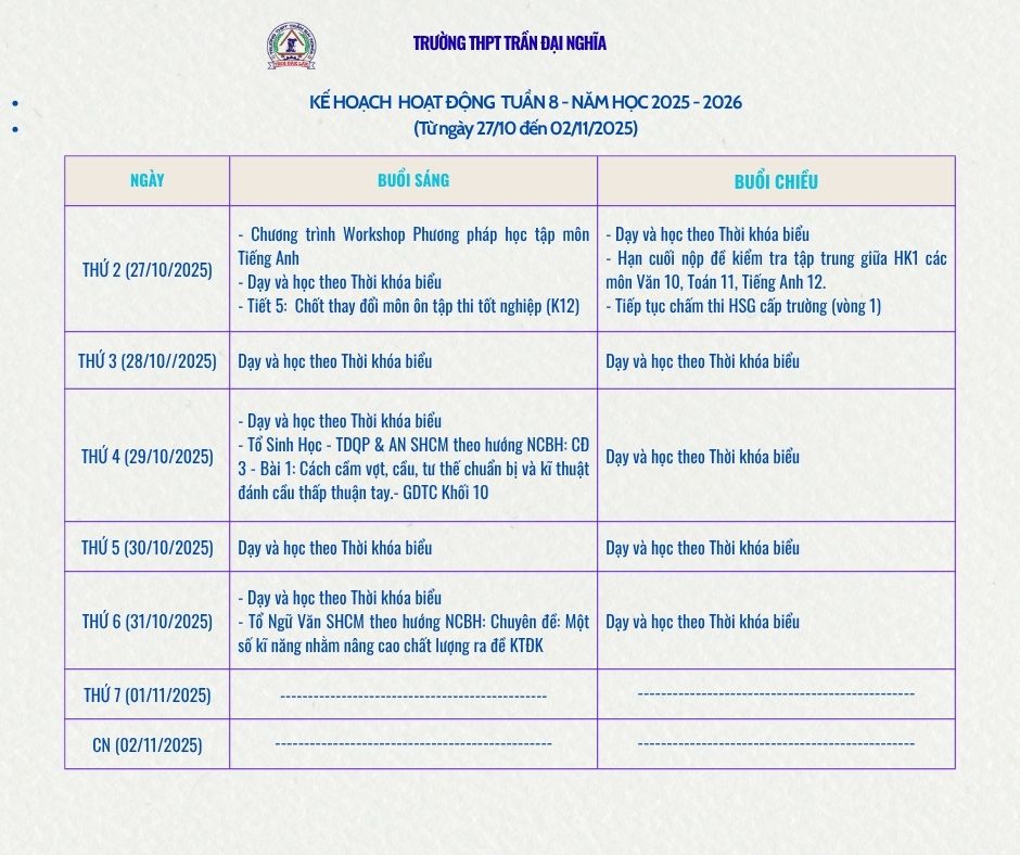 • Kế hoạch Tuần 8 năm học 2025 – 2026