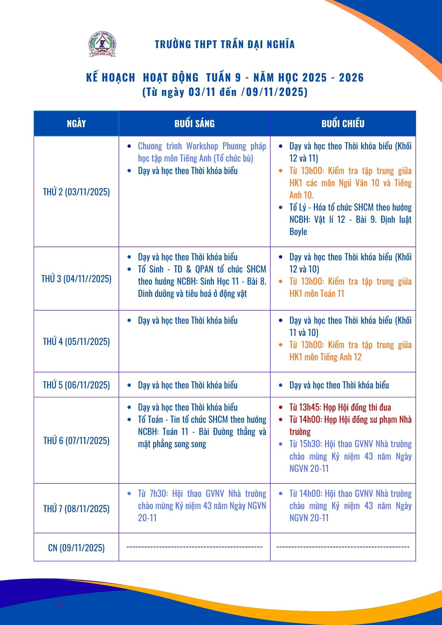 3. Kế hoạch Tuần 9 năm học 2025 – 2026