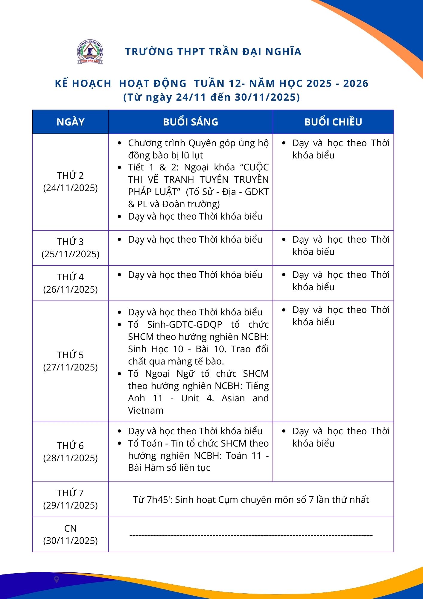 • Kế hoạch Tuần 9 năm học 2025 – 2026
